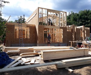 목조주택 골조공사 를 완료하고 지붕 방수시트 및 외벽 방습지 까지 설치완료하엿습니다.